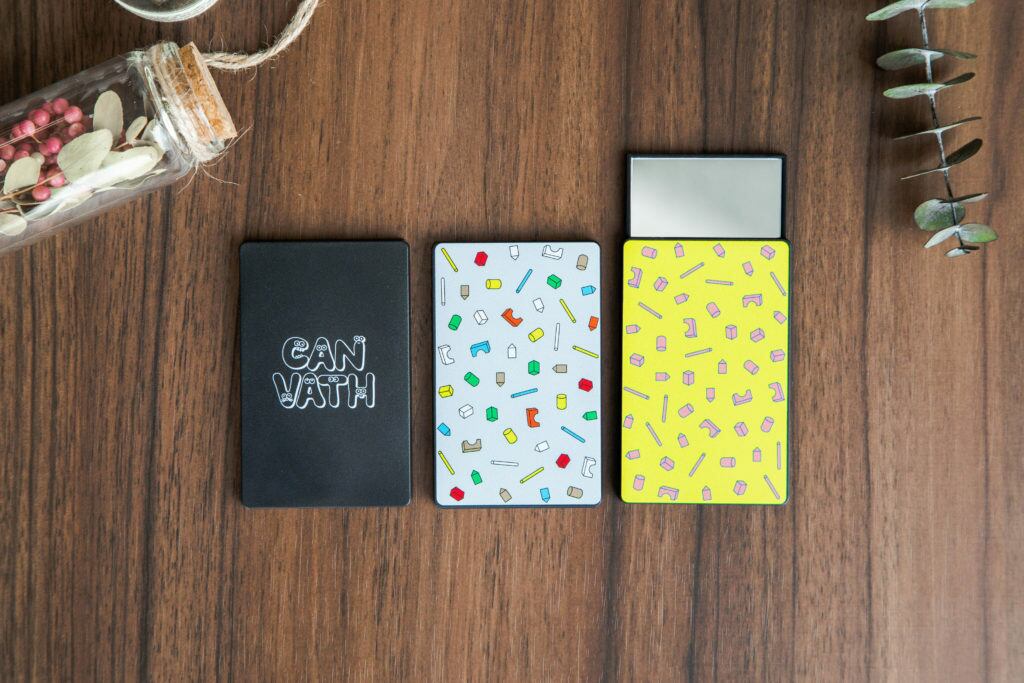 フタをスライドさせることで鏡が出てくる、スライドカードミラー。
